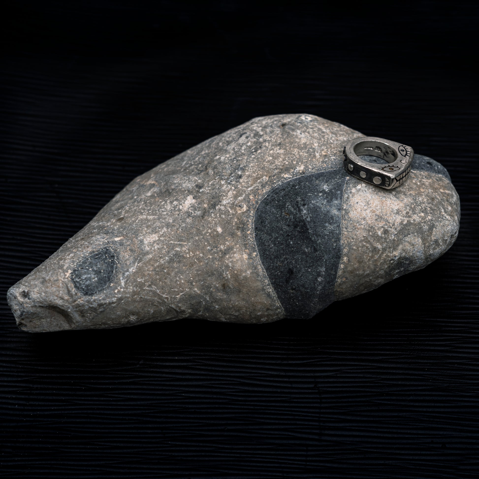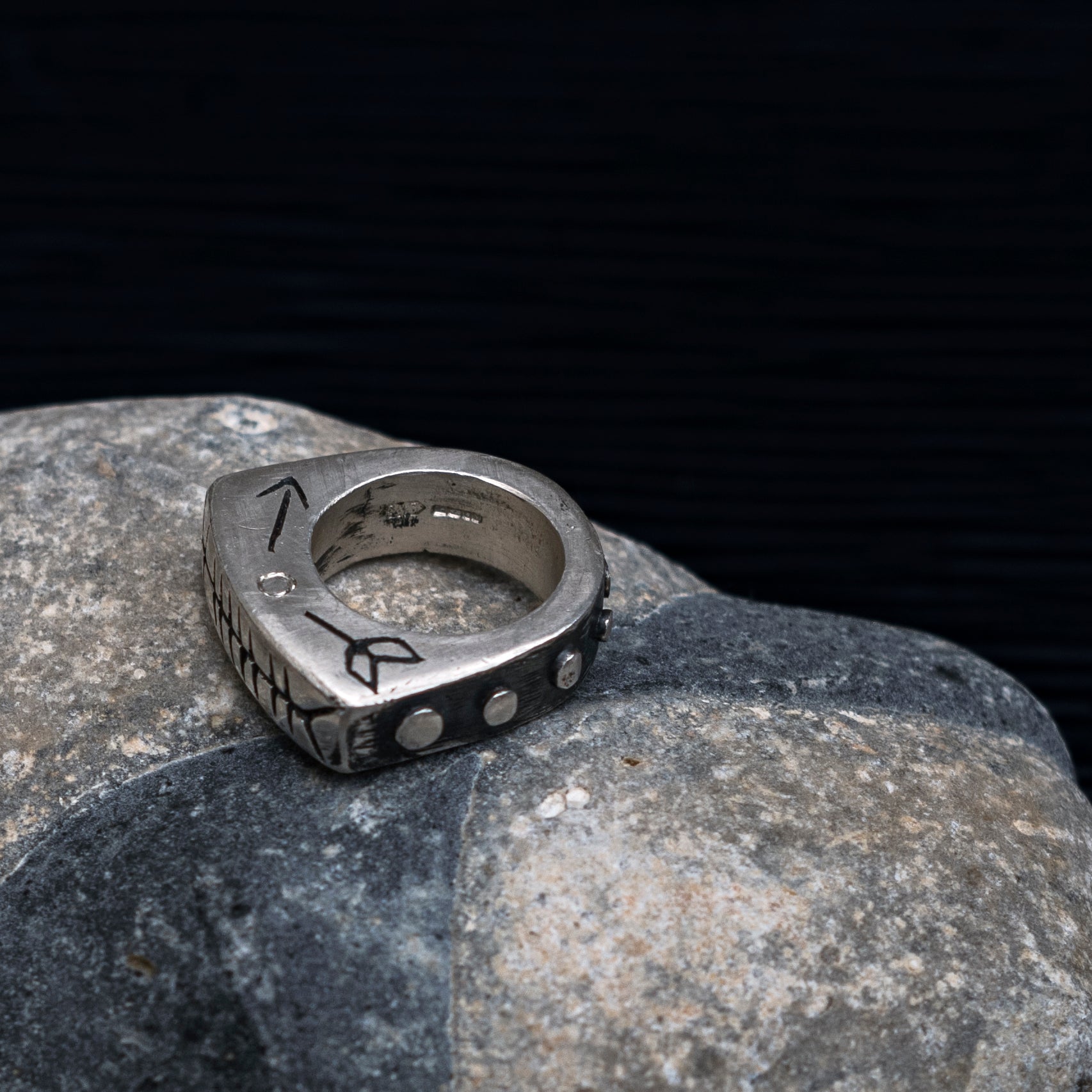 A protective sigil, a pair of eyes and a broken arrow - engage your minds' eye in transformation. This ring reminds the wearer to stay grounded, yet follow our inner voice of consciousness... Broken arrows are symbols or peace, strength and friendship.
