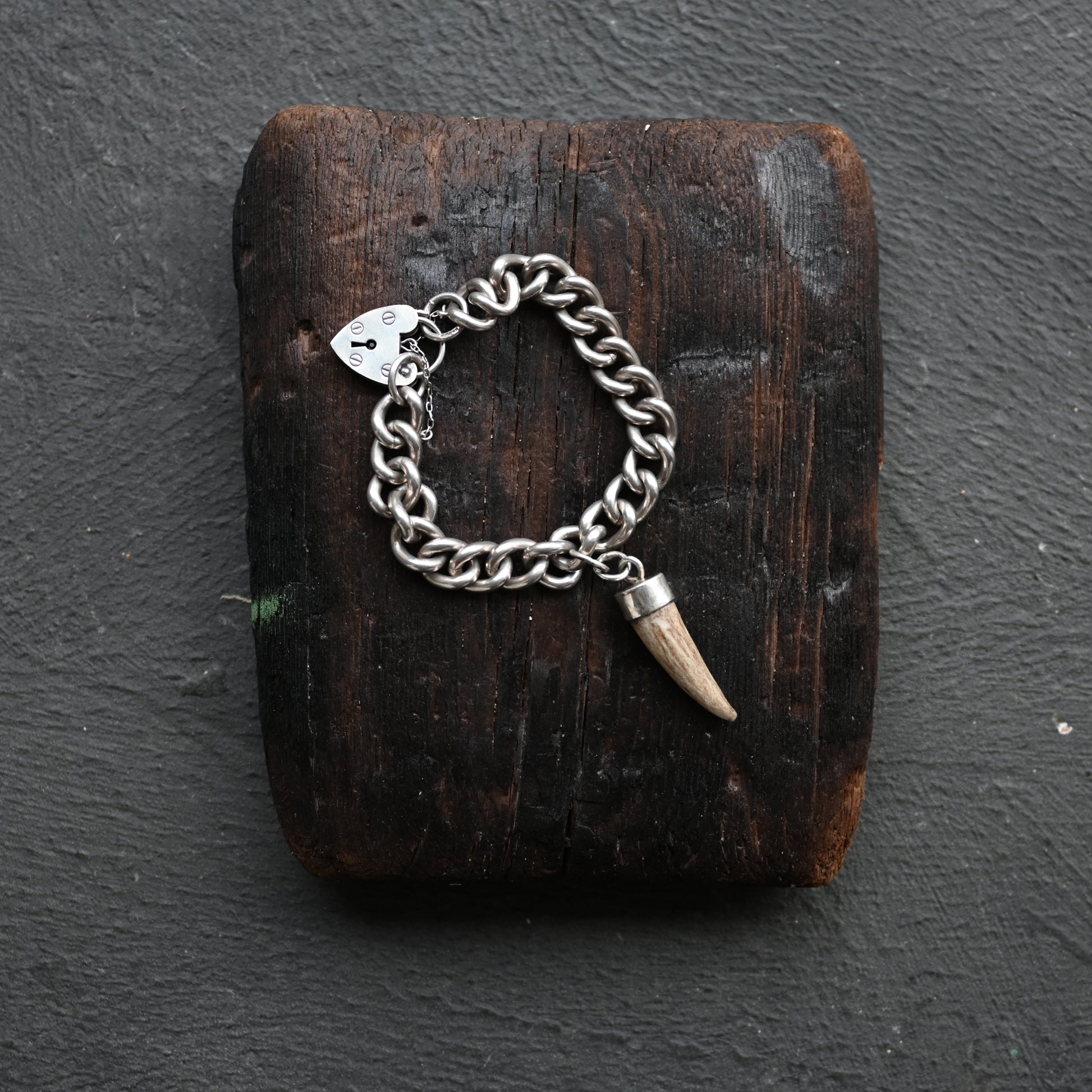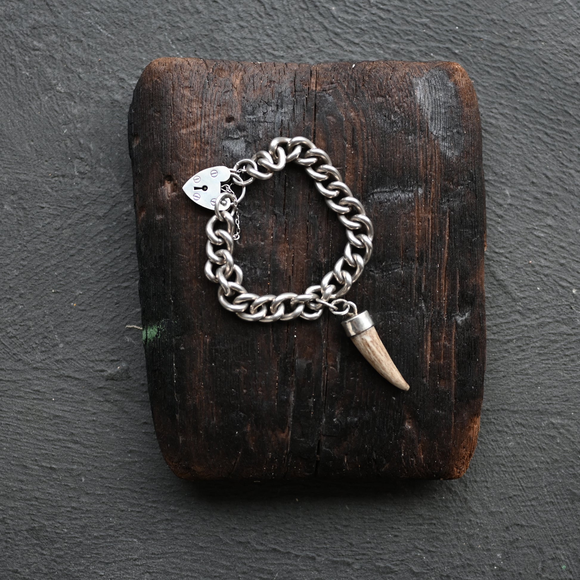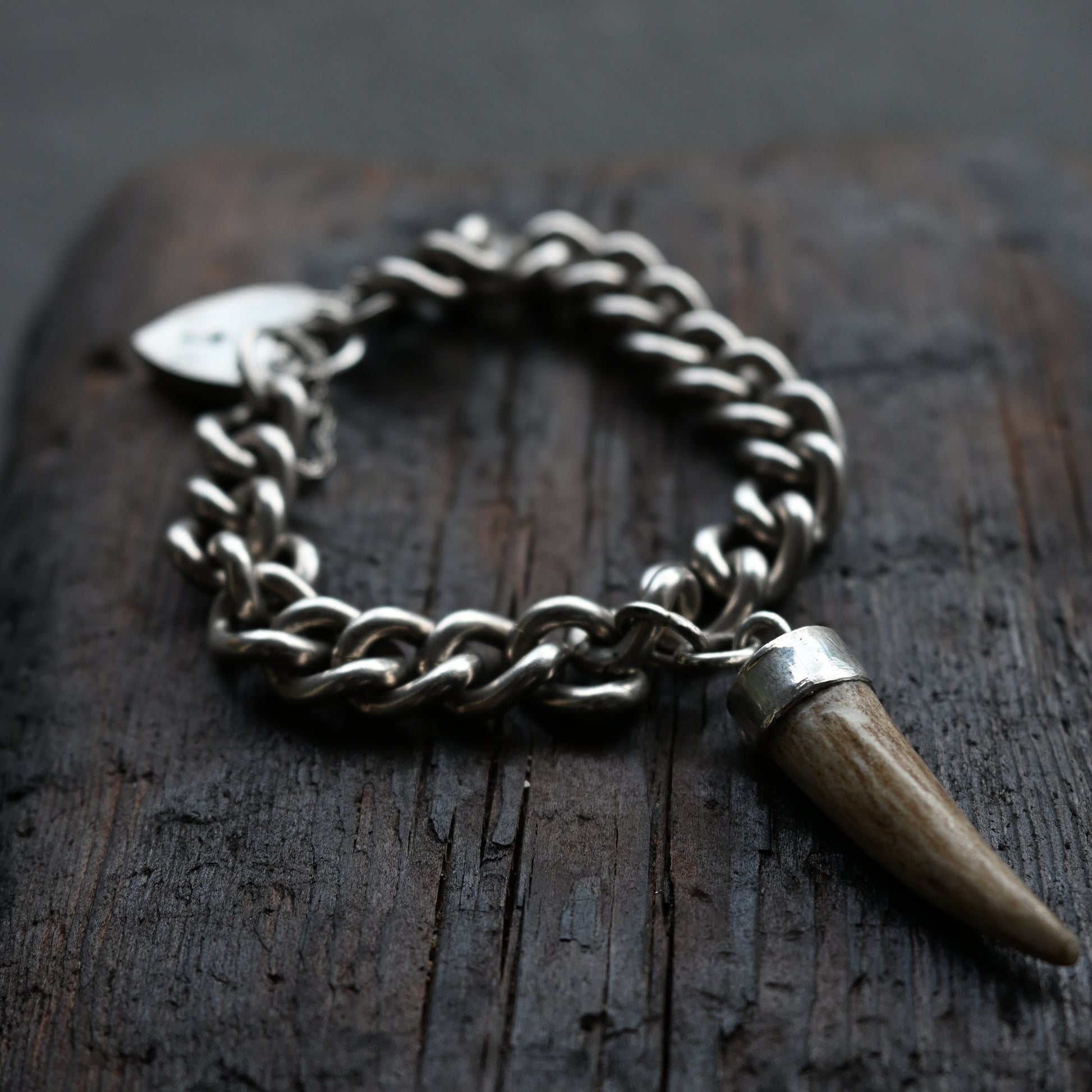 Sterling silver vintage chain with heart clasp and a foraged antler tip.