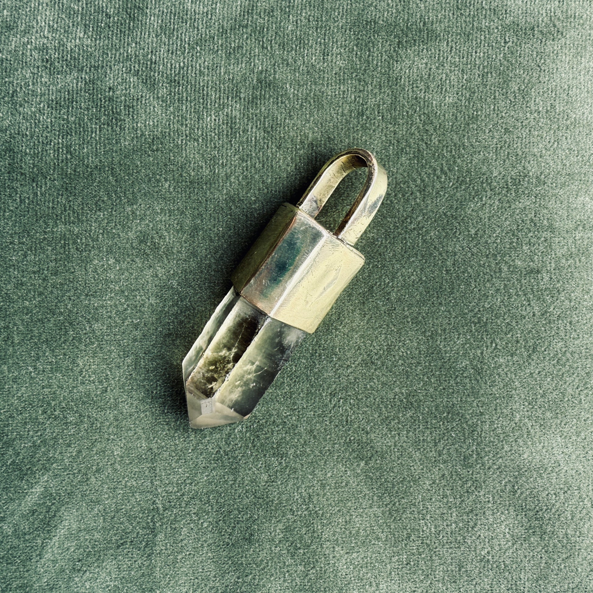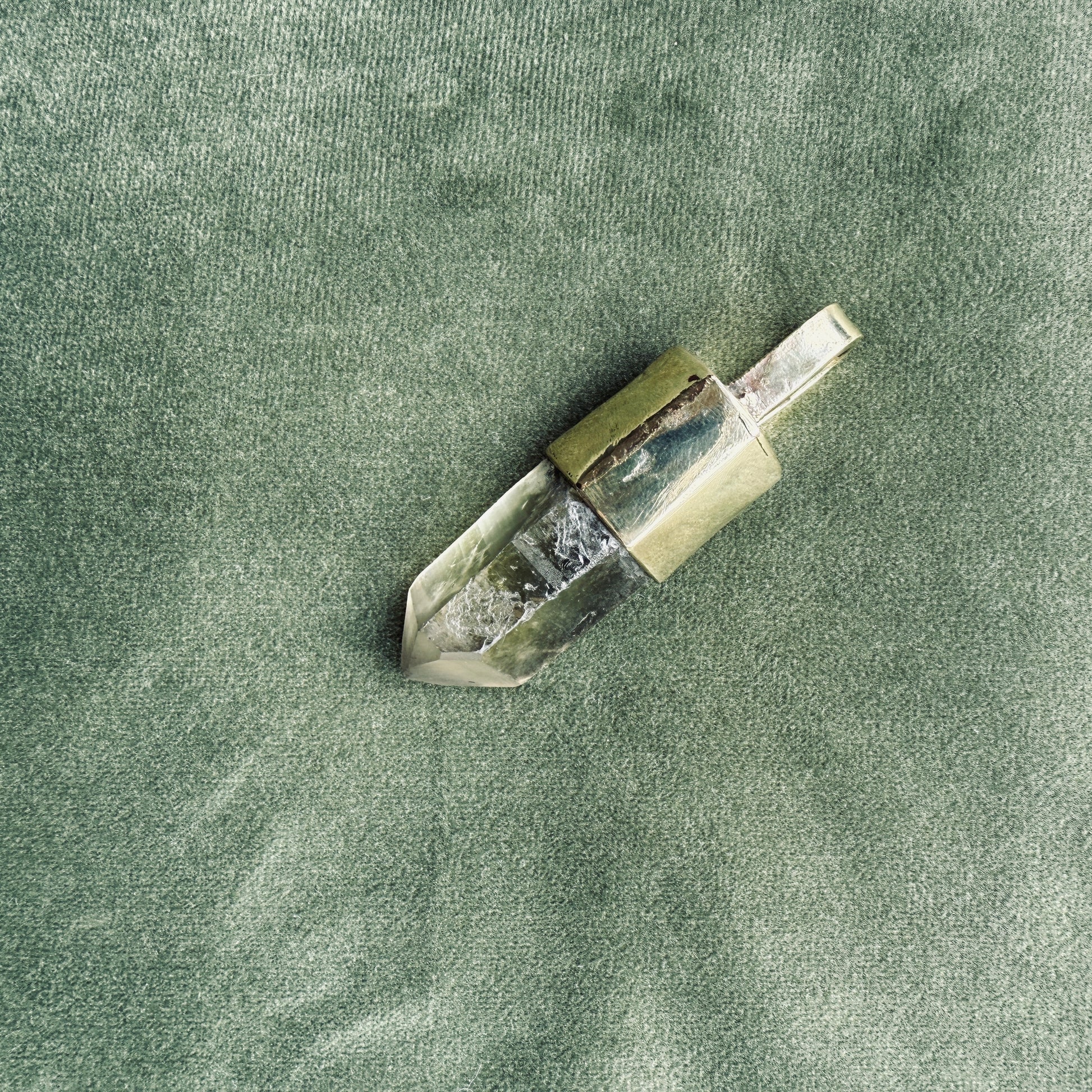 This ethical pale yellow citrine is capped in brass - beautiful and fierce.