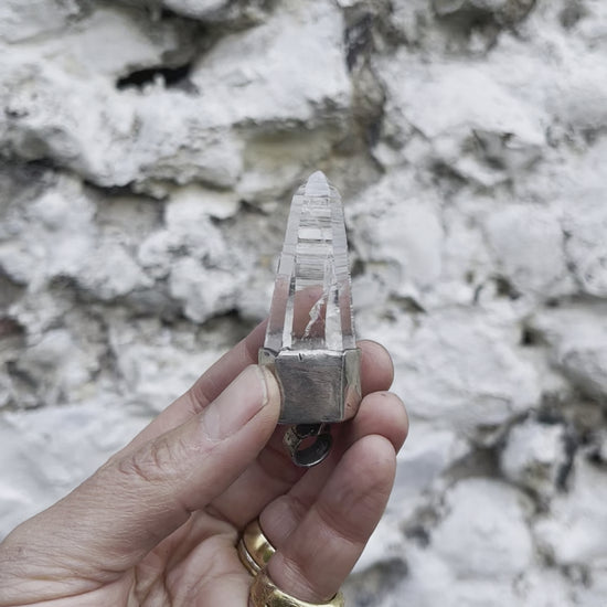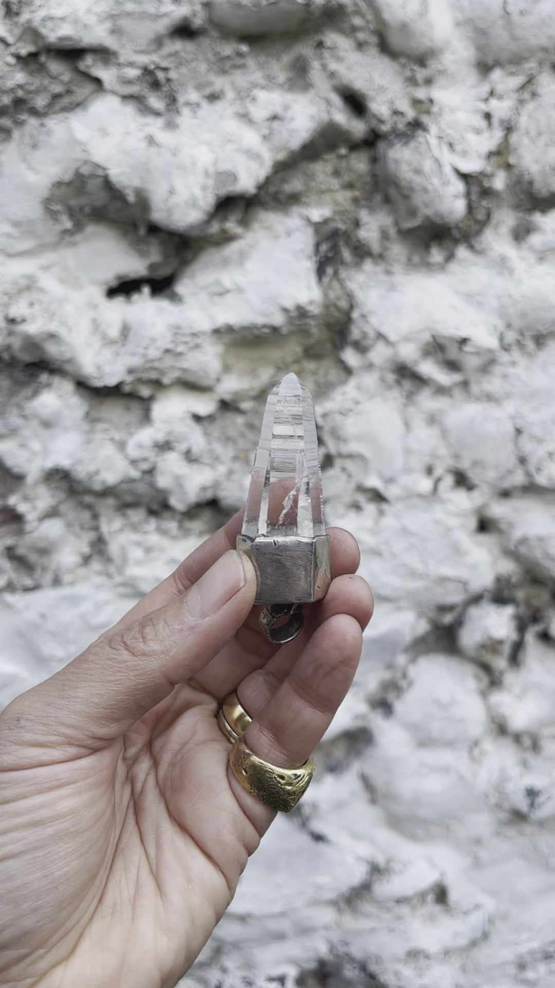 Colombian clear as ice Lemurian Quartz - Capped in textured Sterling silver 925