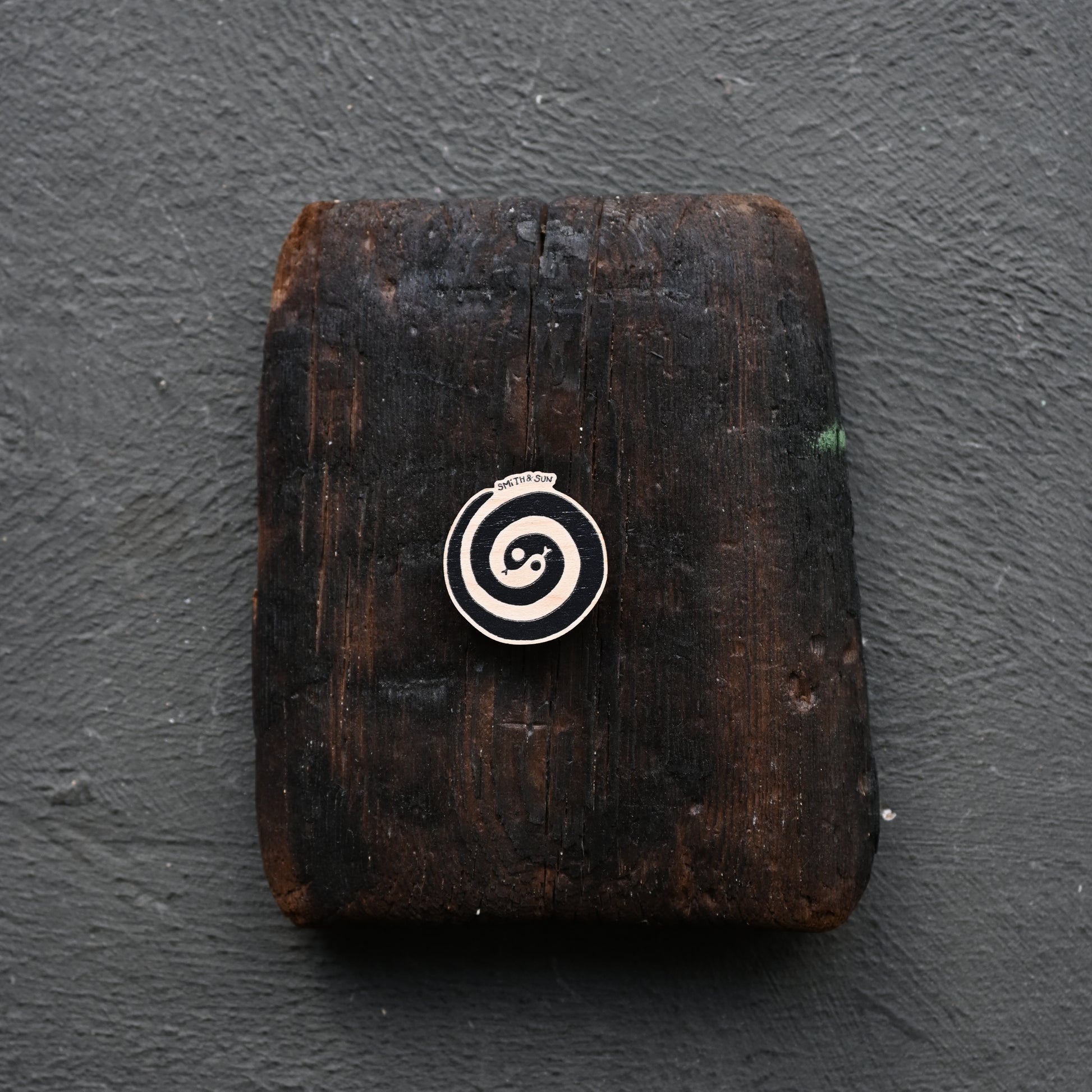 The Cosmos as encircled by the fiery Creative Spirit, aka a naga wooden badge drawn by me. Snakes represents creative life force: powerful, splendid, wonderful and proud. Moving forward with new ideas and values. Overcoming challenges more easily and finding the balance between duality and singularity. As snakes shed their skin through sloughing, they are symbols of rebirth, transformation, immortality, and healing.