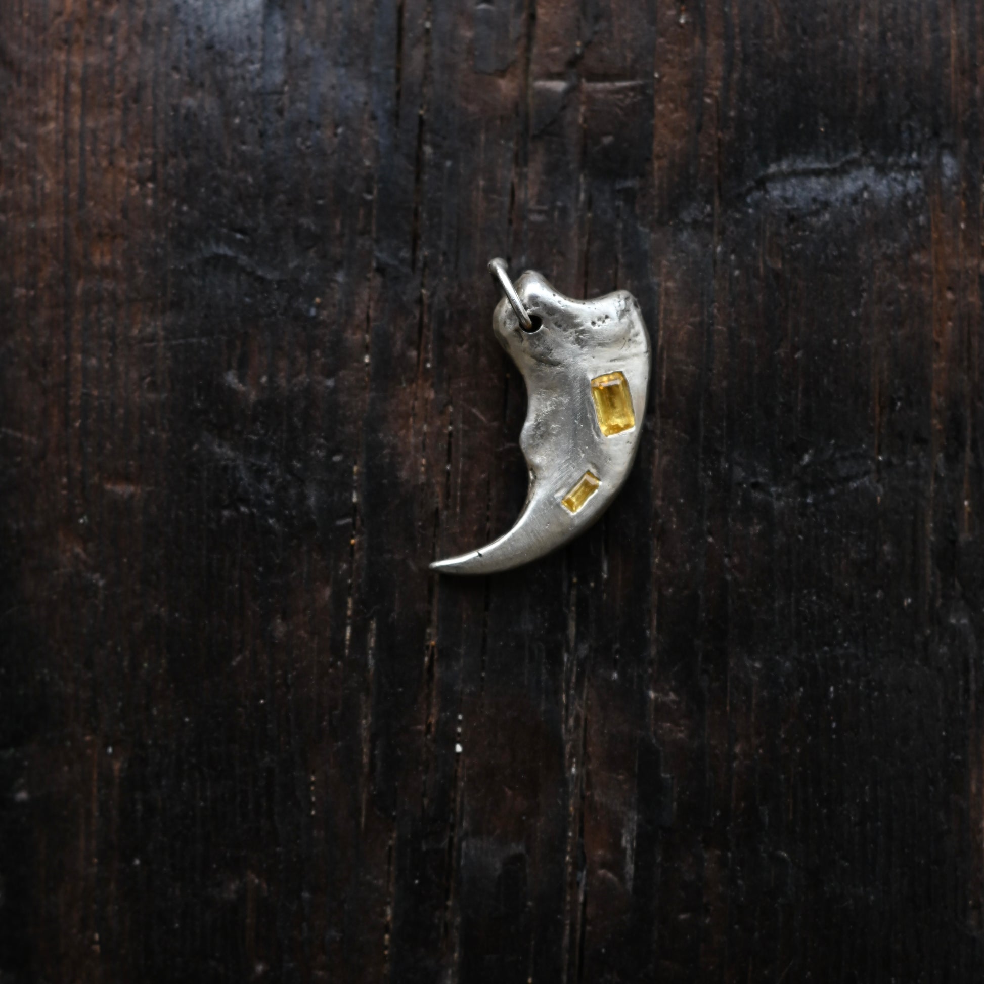 This hand carved solid silver bear claw has two really beautiful yellow sapphires and can be worn as a pendant or on any other talismanic combination of your choice.