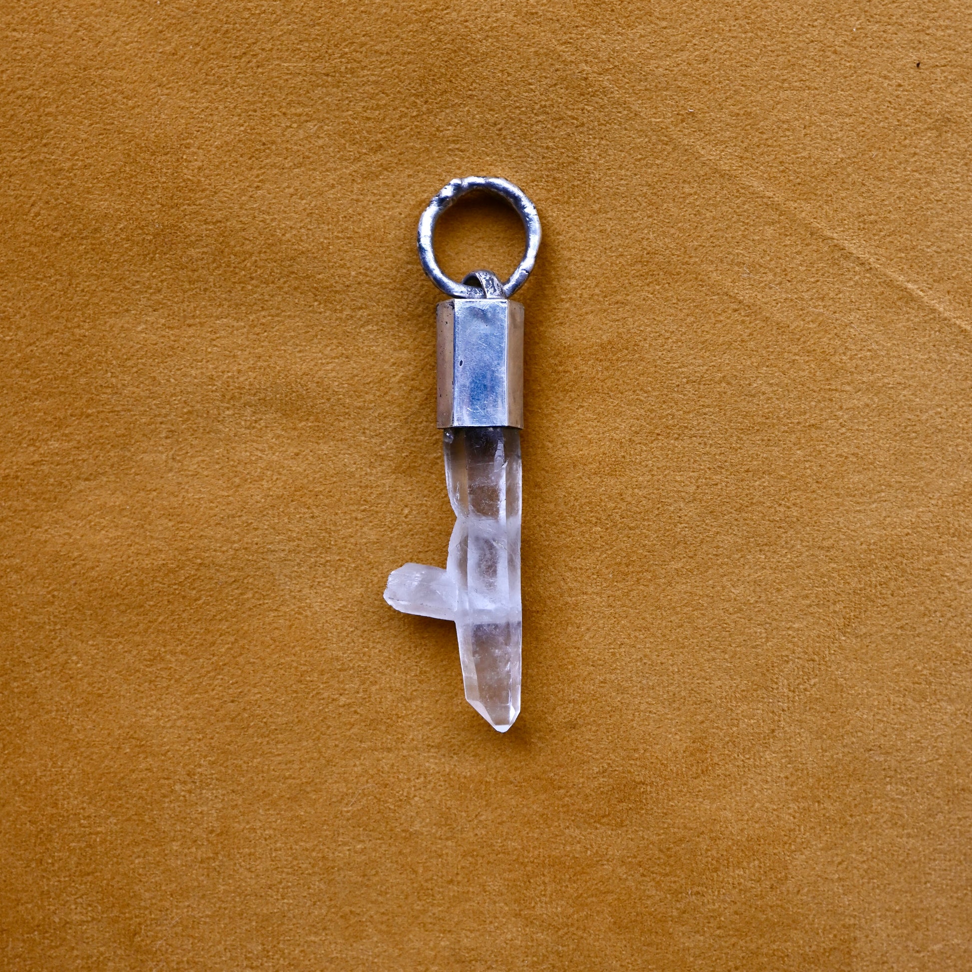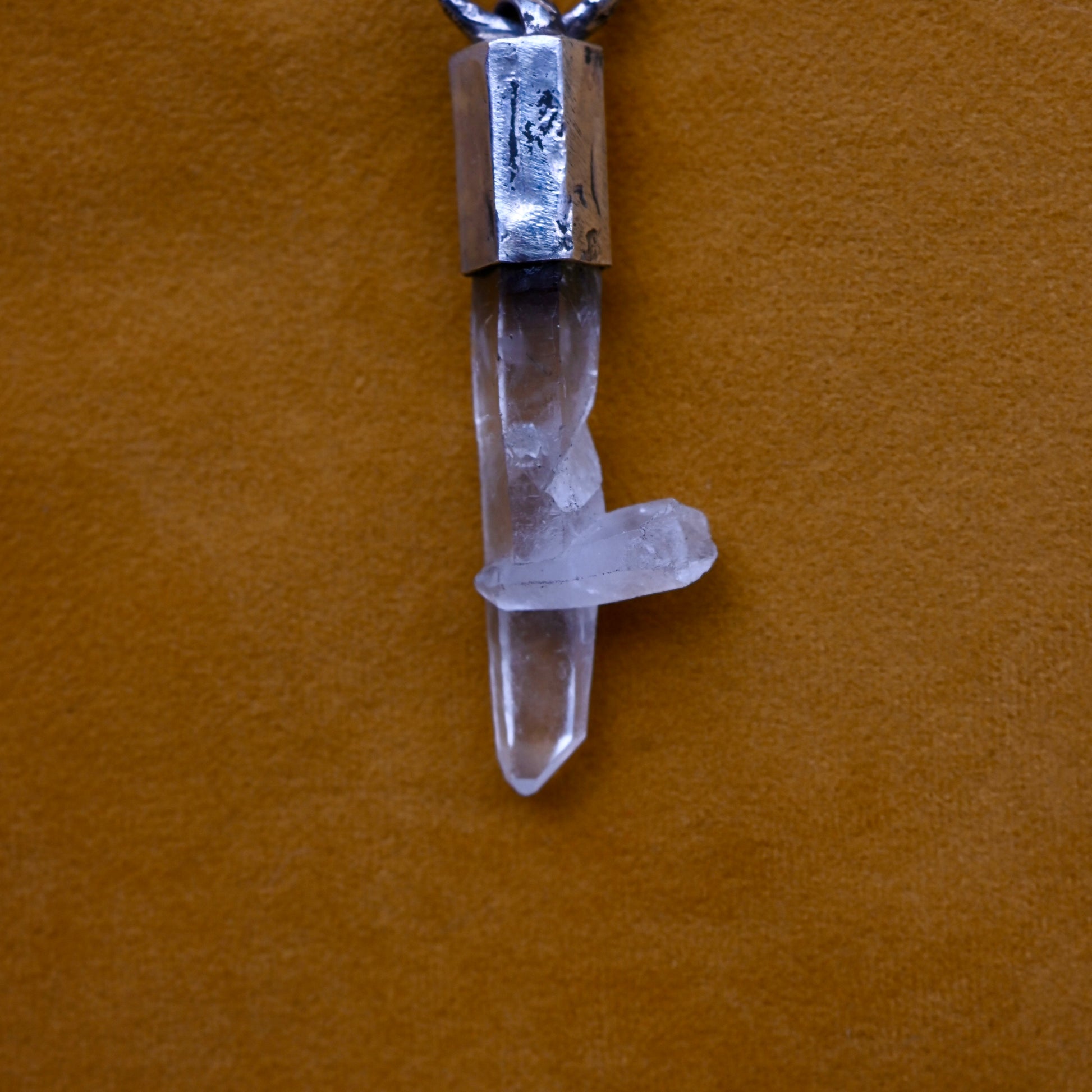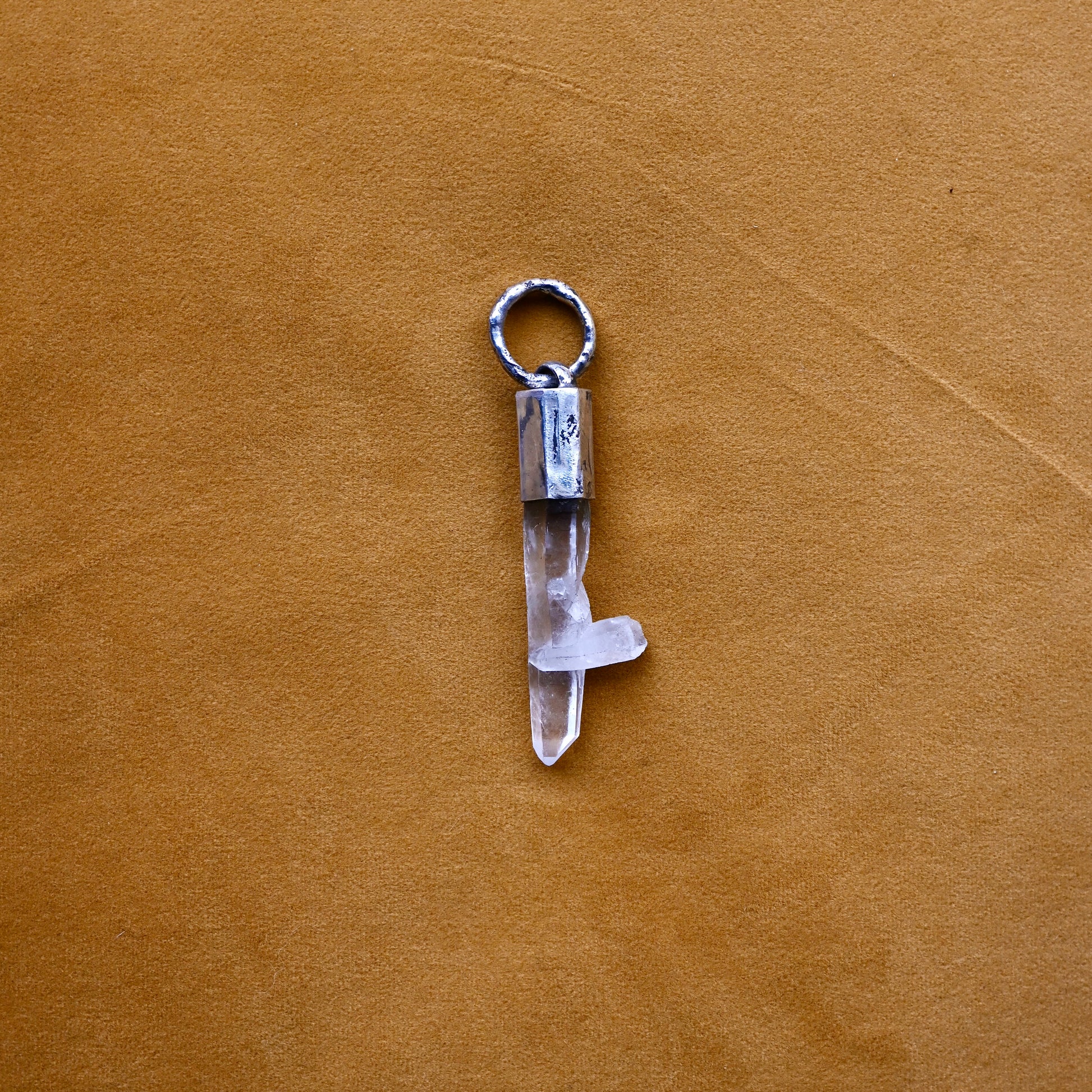 One of my favourites. A magical amulet that will make you smile. I don’t know why, but it really does! A master healing clear quartz with a penetrator, capped in sterling silver, with a sterling silver buried band – ready to be slung around a chain, leather cord, or, well, on anything.