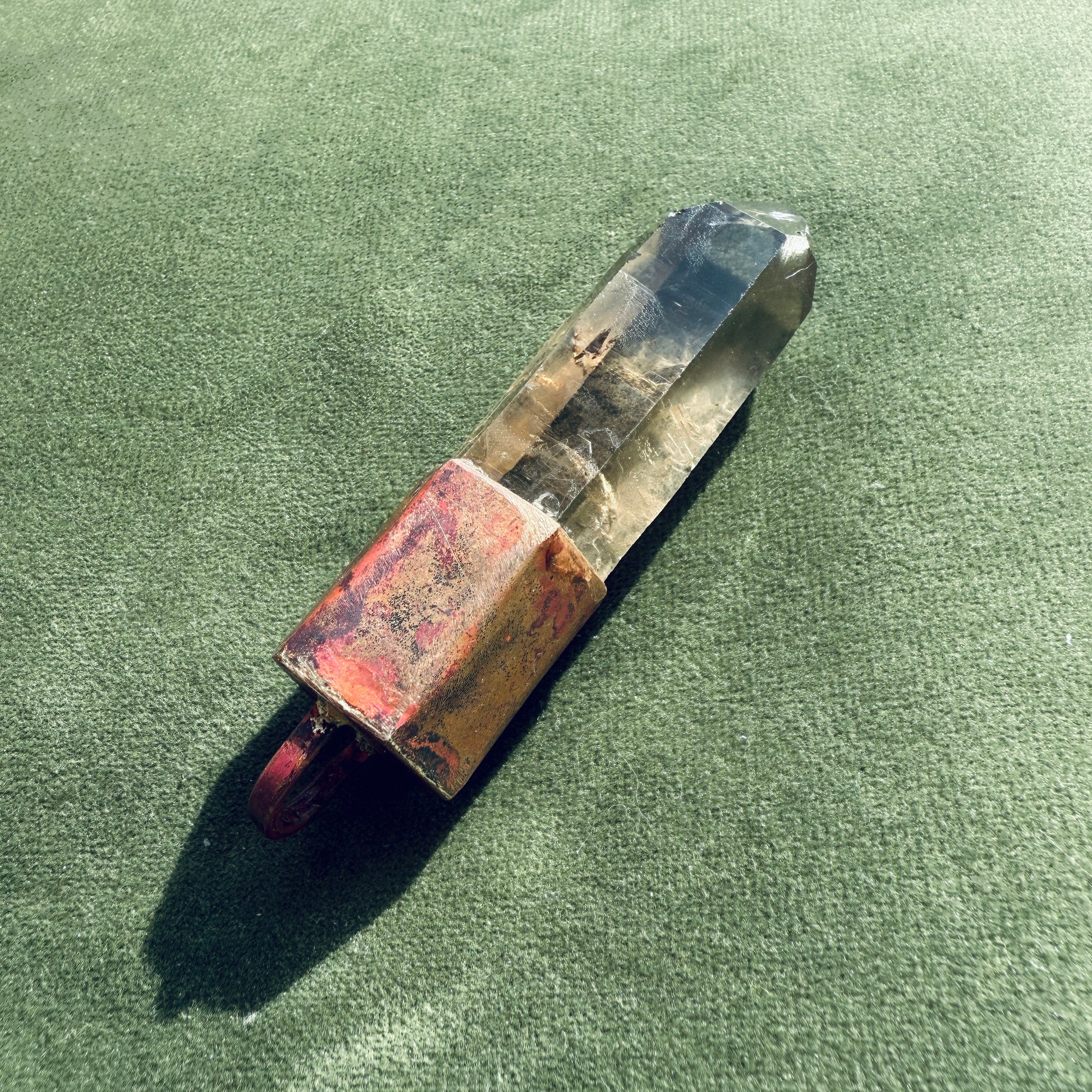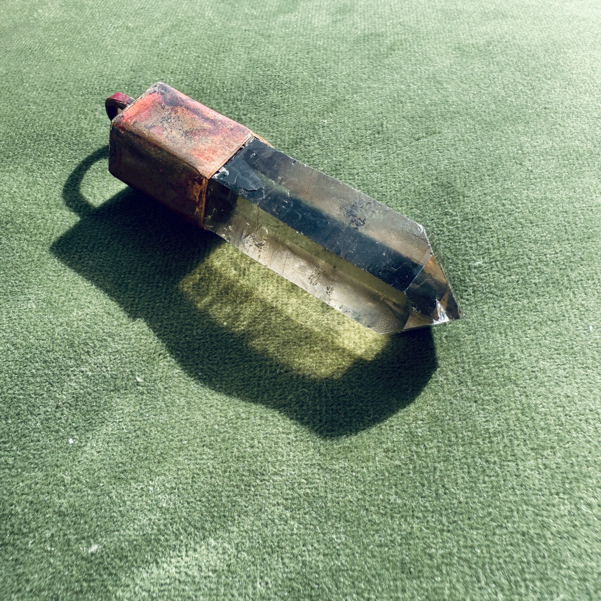 Smoky quartz is a remarkable grounding stone, known for its ability to absorb and transmute negative energy into positive vibrations. This particular piece features a striking, gnarly tip and an internal fissure that catches the light, revealing a subtle rainbow shimmer - a natural quirk that makes it especially captivating. Its soft, wispy shades of brown are the result of natural underground radiation from granite deposits, giving the stone both its color and its earthy, stabilizing energy.