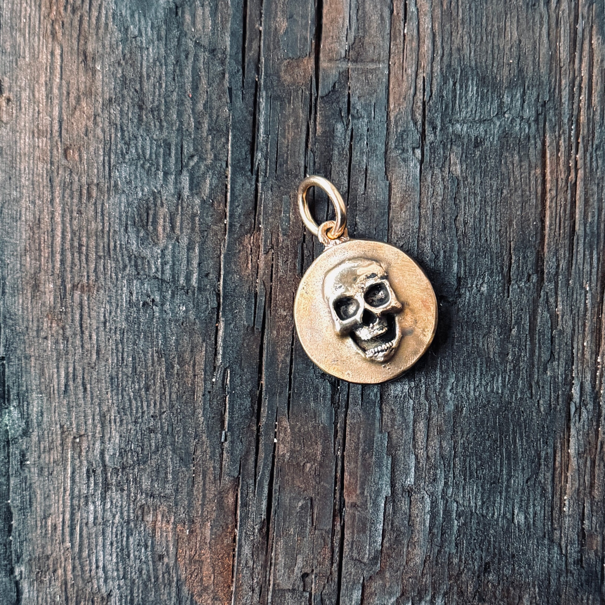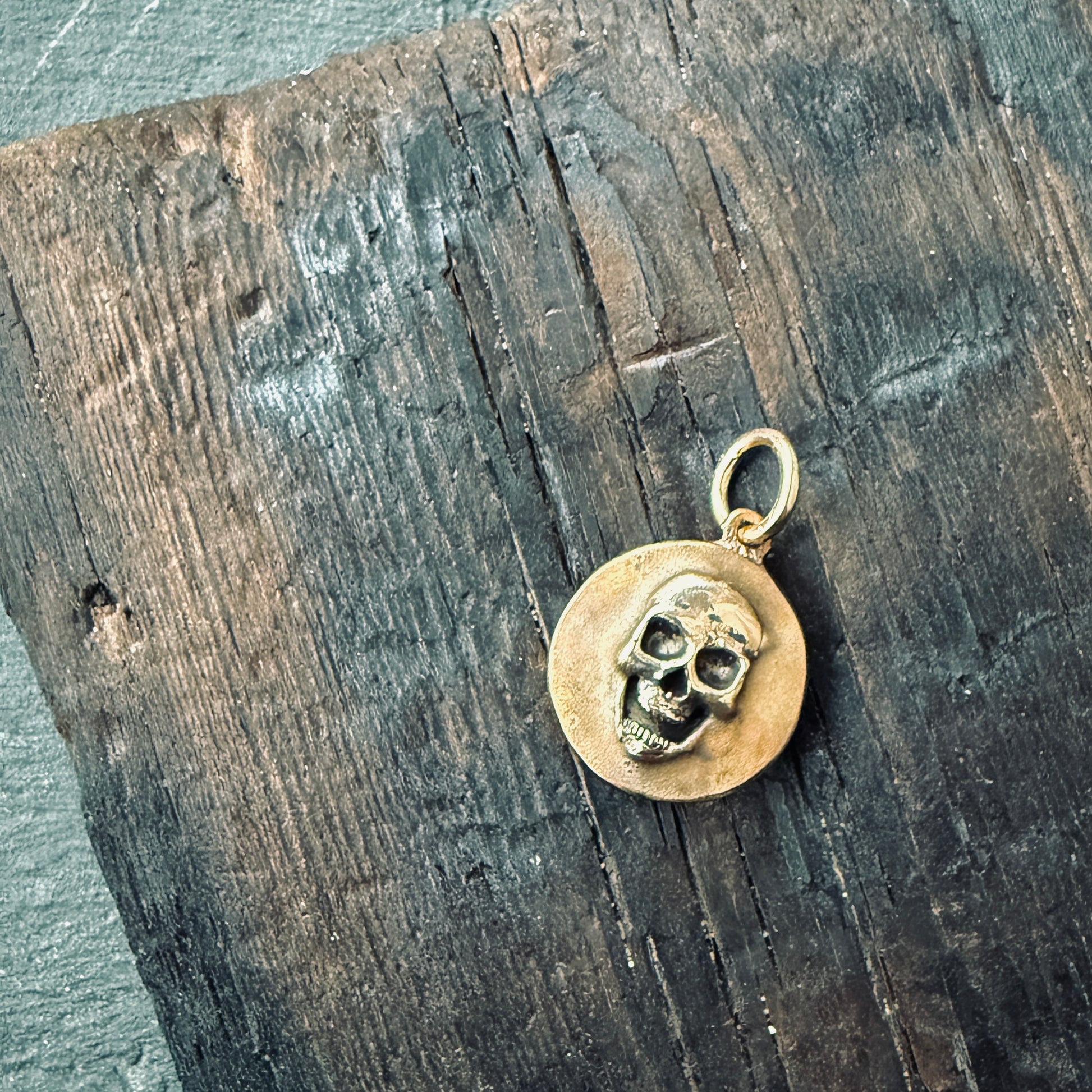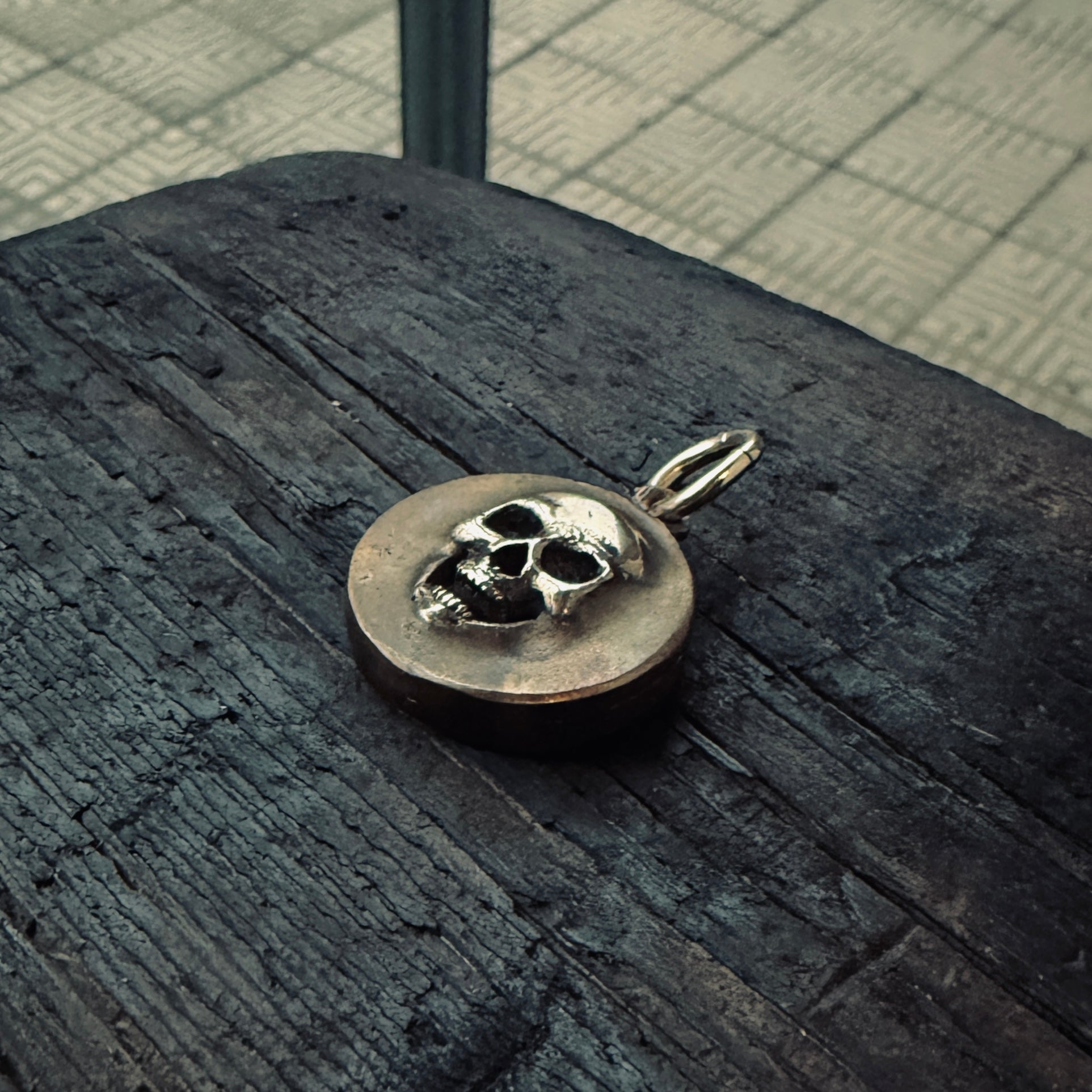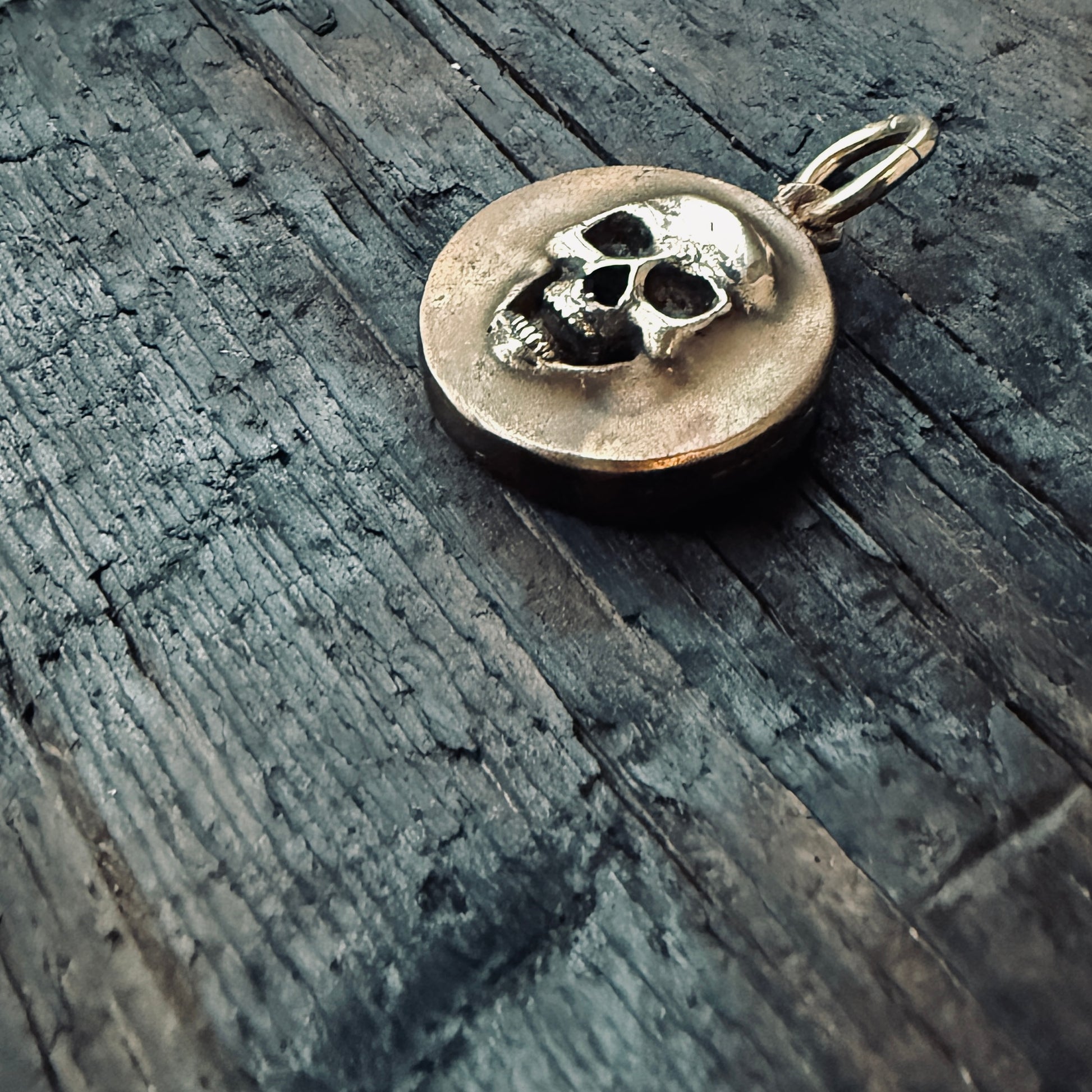 A hefty warm bronze amulet with skull face. Would feel so good on the chest, like a thud.