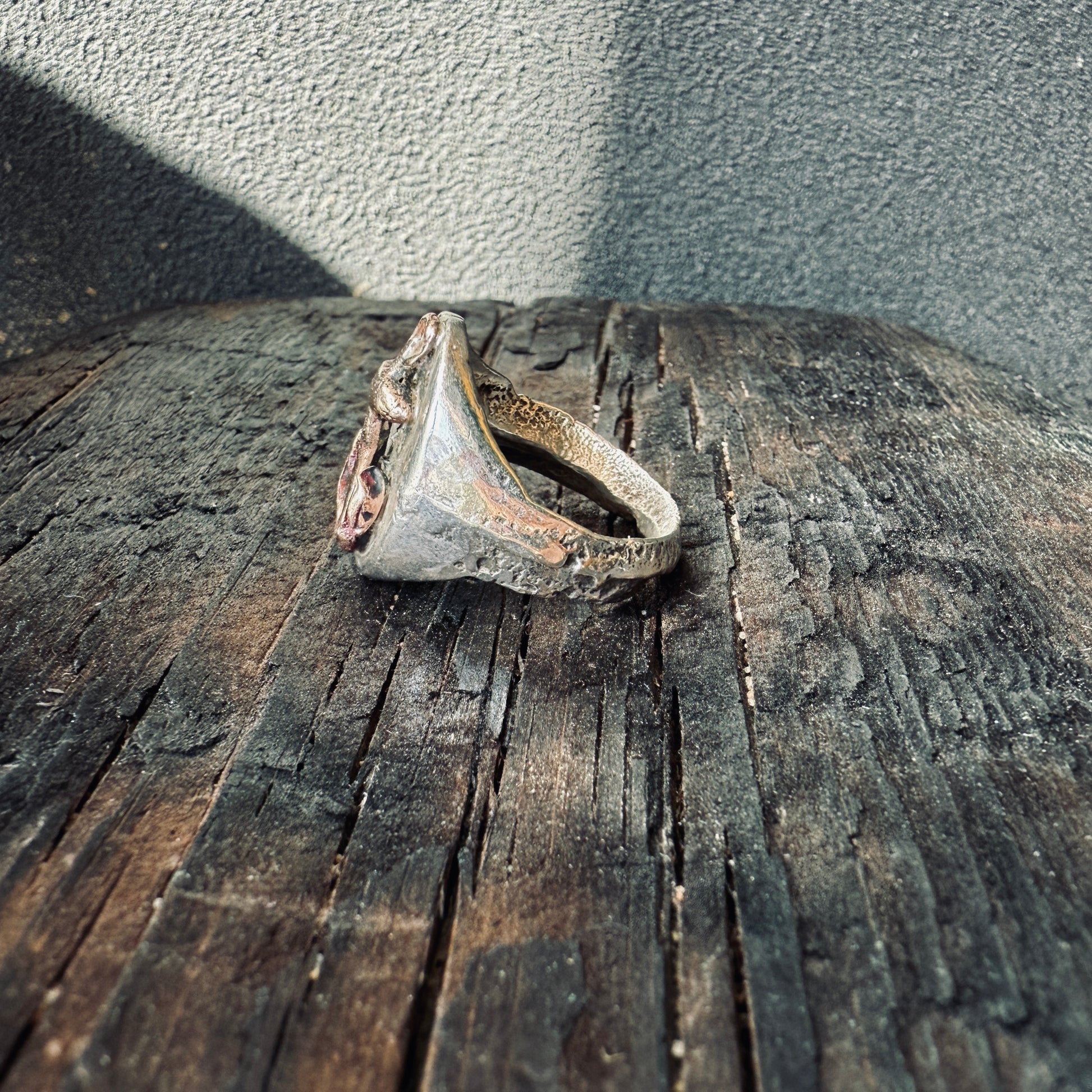 This is a ring that I often wonder whether I should slip it into my own collection. Just the right amount of wonky charm I love. And I love love love mixing metals.