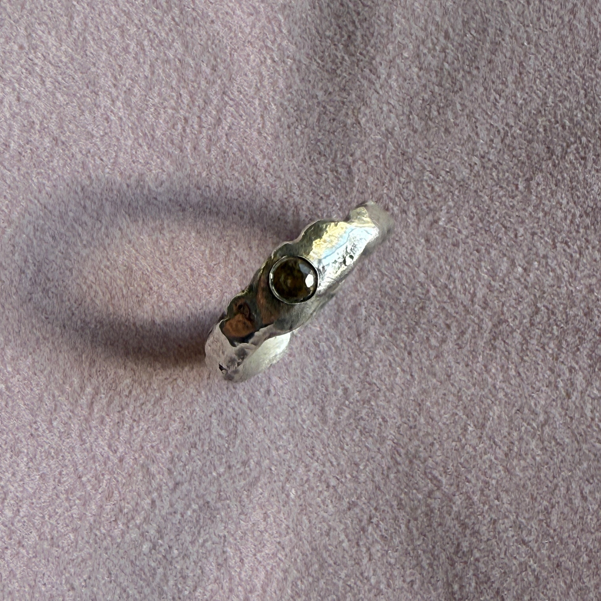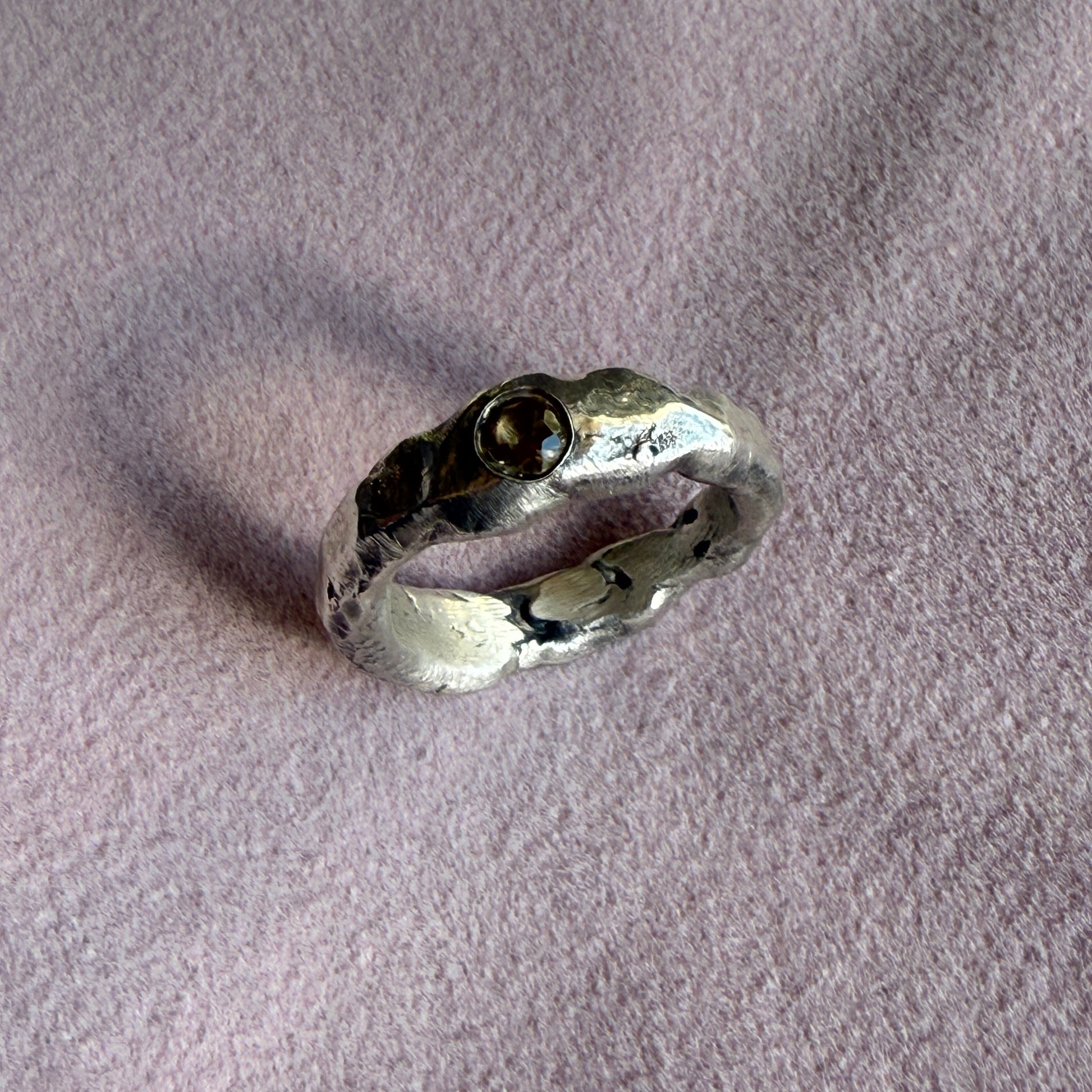 sterling silver buried bands with a smoky quartz.