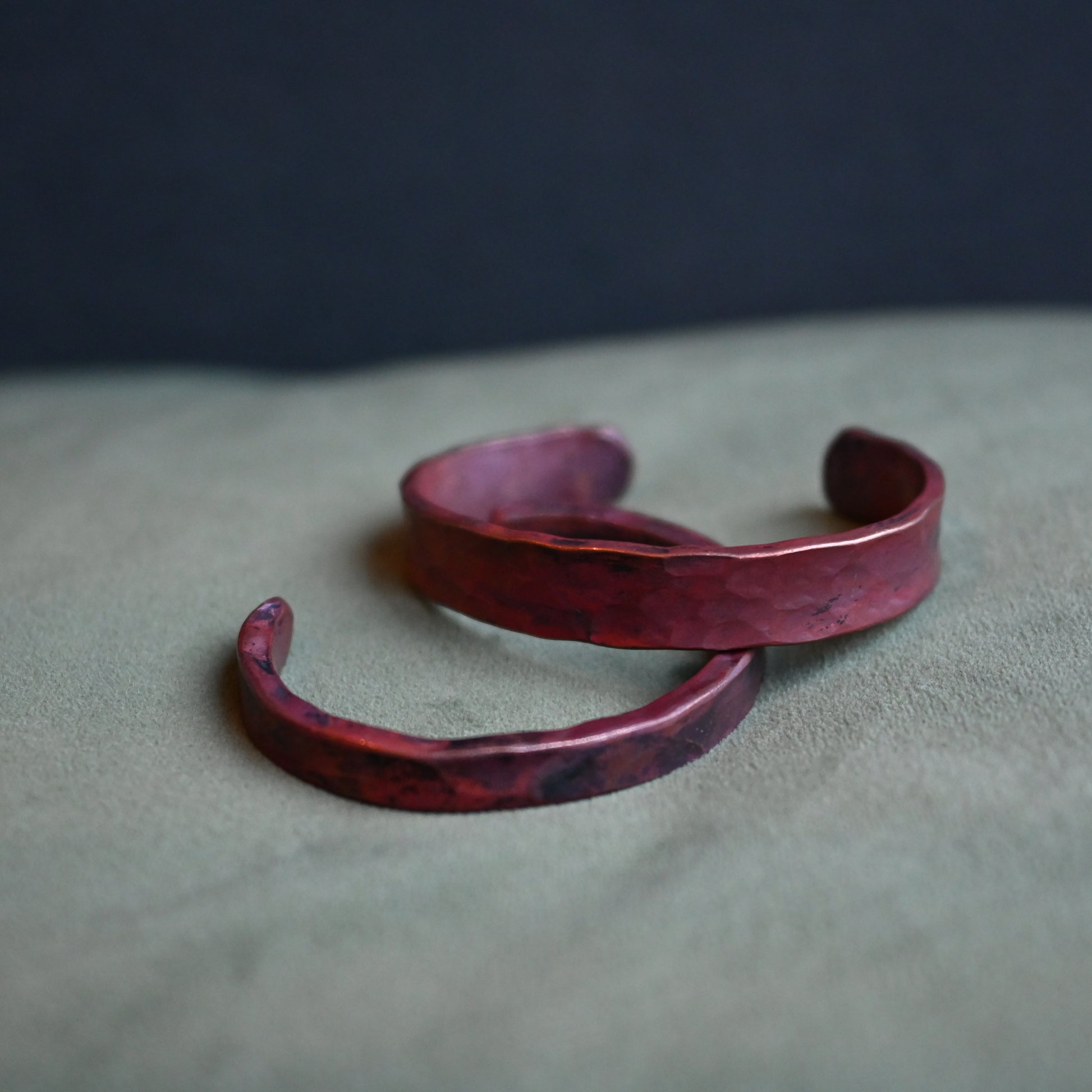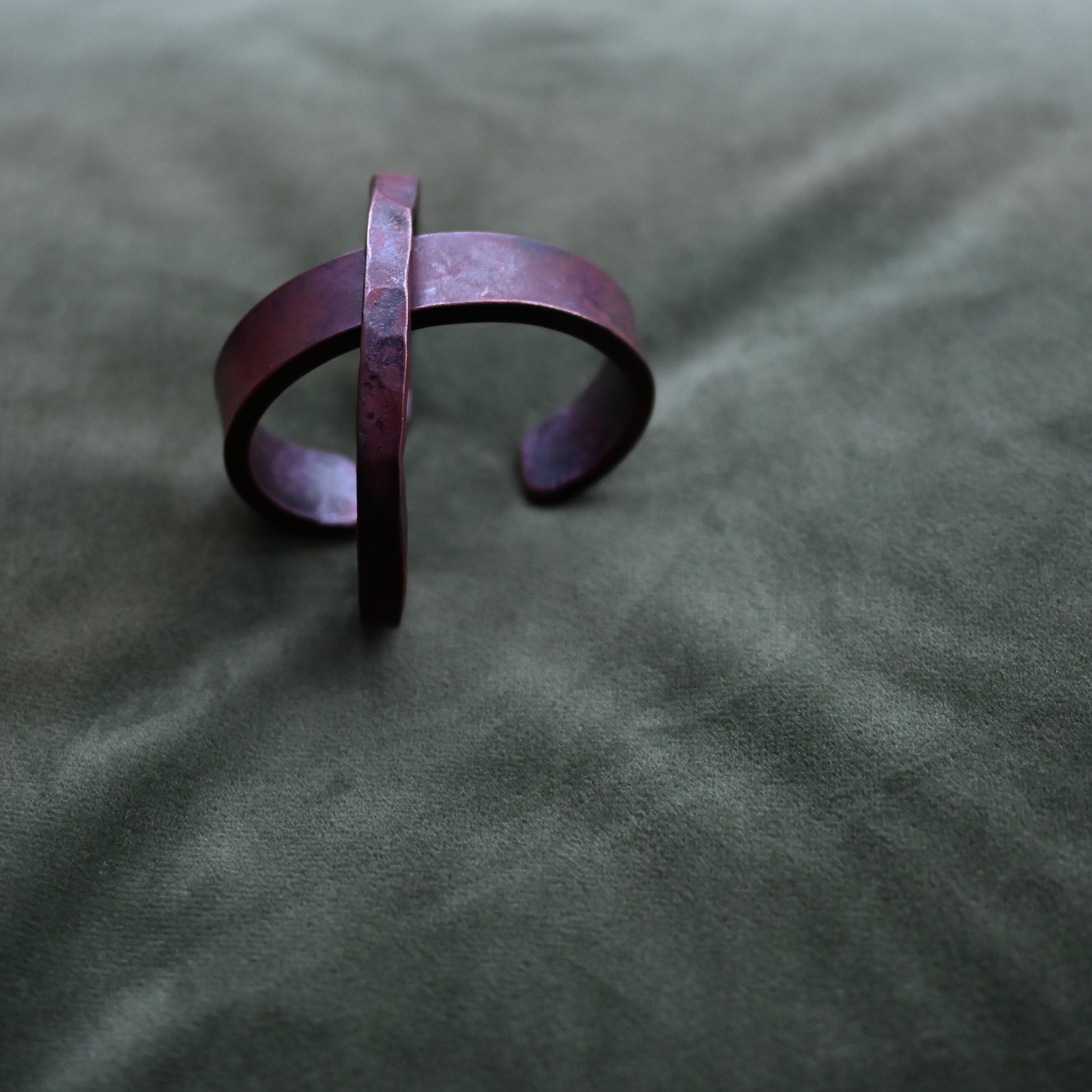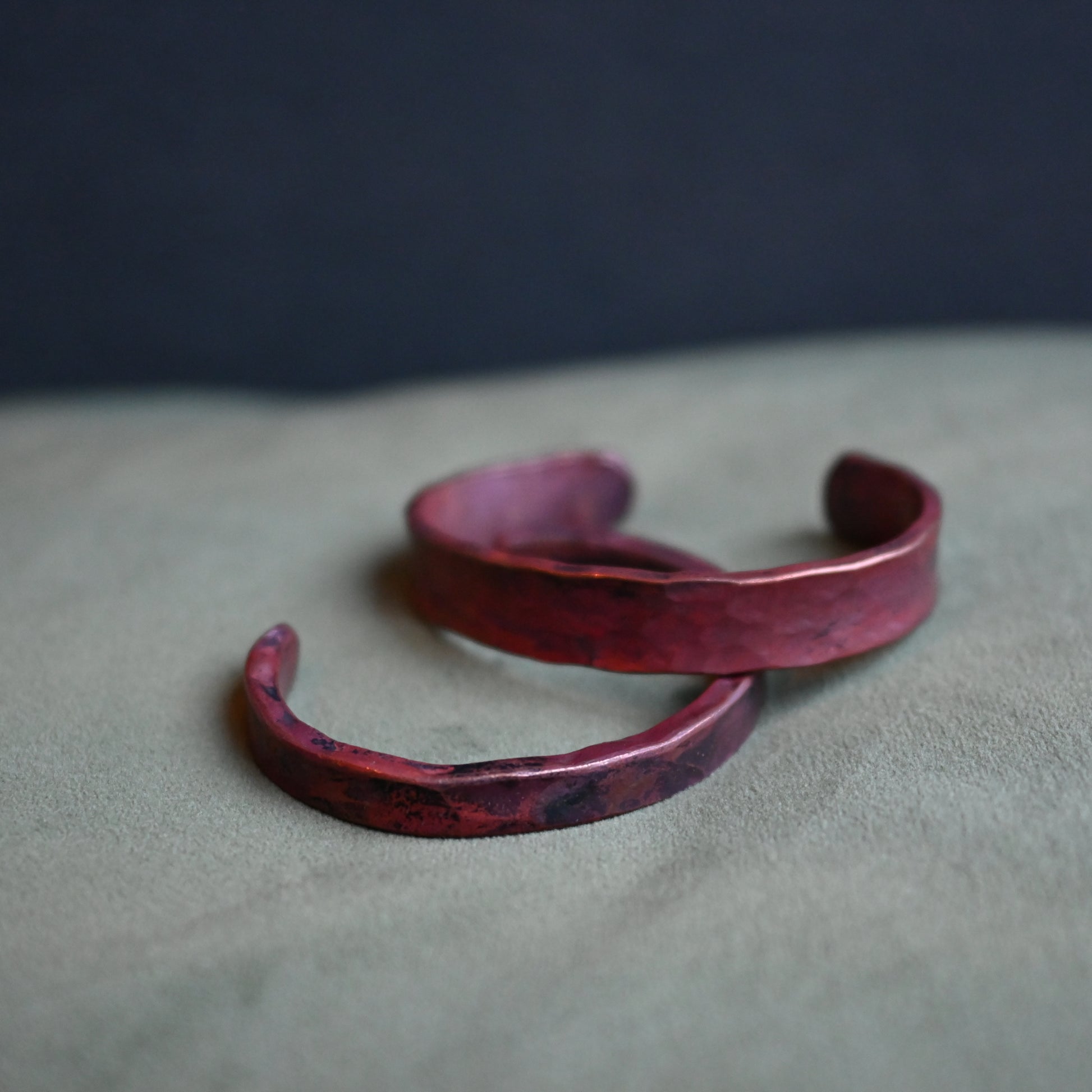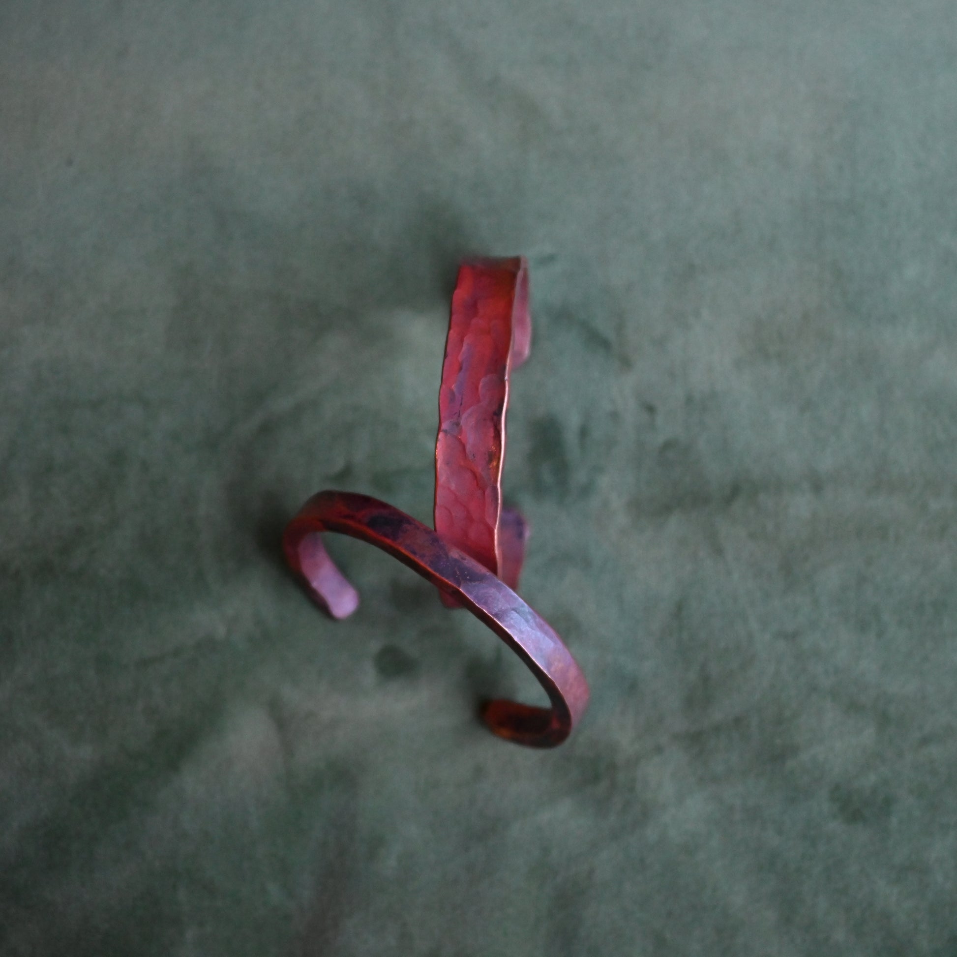 Fire oxidised copper bangle - The process brings out beautiful colours, transports us to rich mineral mountains and caves. Beyond aesthetics, Copper is a wonderful healing and lucky metal.